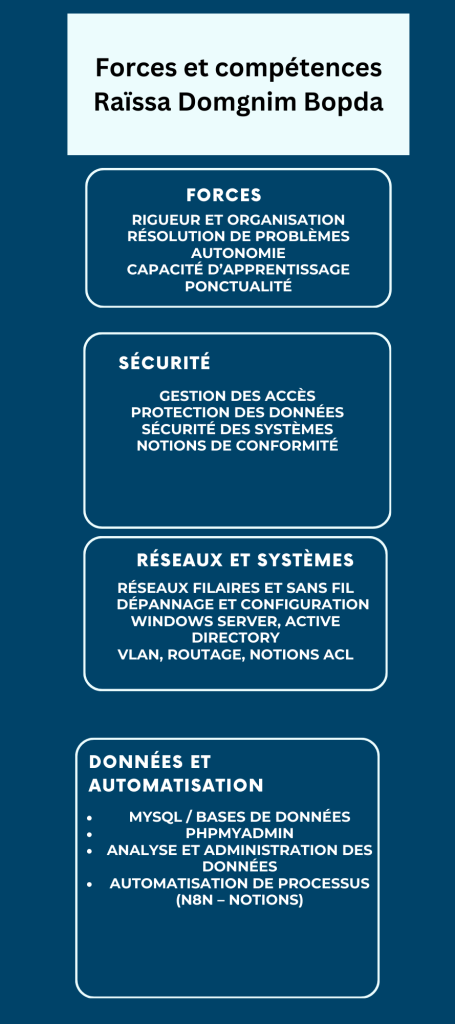 - Maîtrise des logiciels : Word, Excel, Visual Studio Code, Visual Studio.