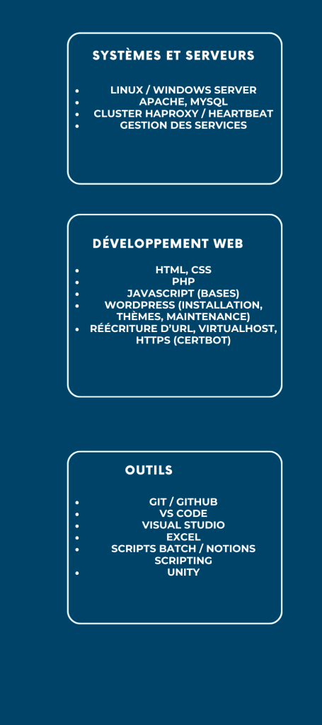 - Bonnes connaissances en programmation, en jeu vidéo et en réseautique.